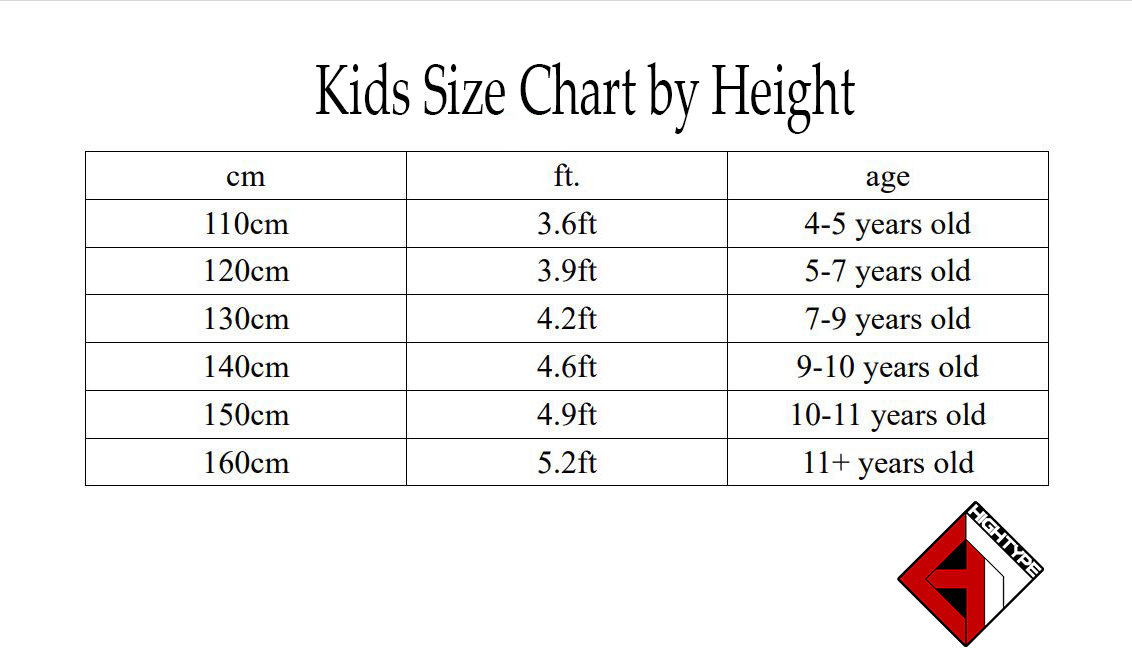 Kids sizes based on height in description